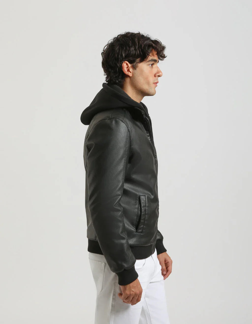 Bomber effetto pelle con cappuccio