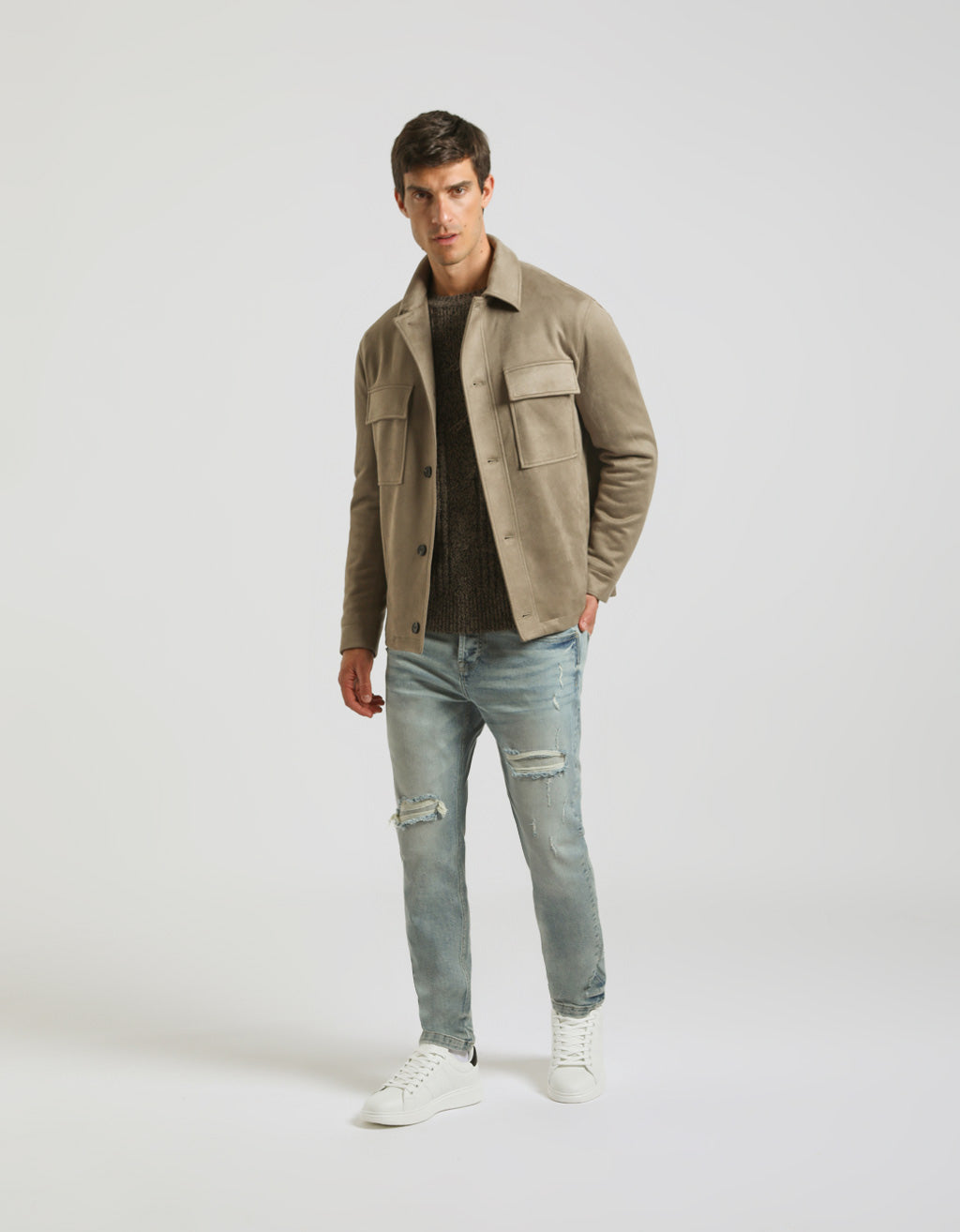 Giacca camicia effetto camoscio
