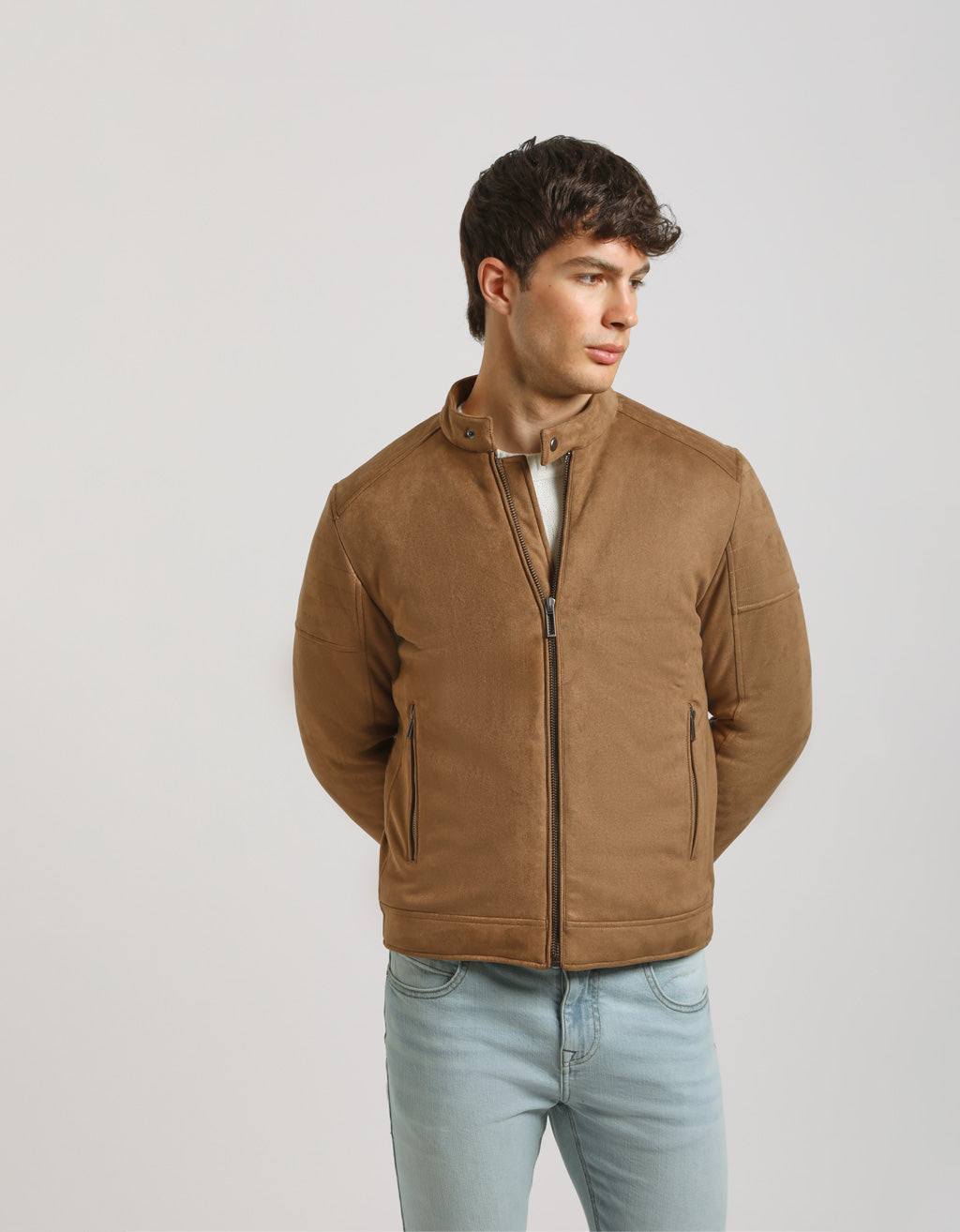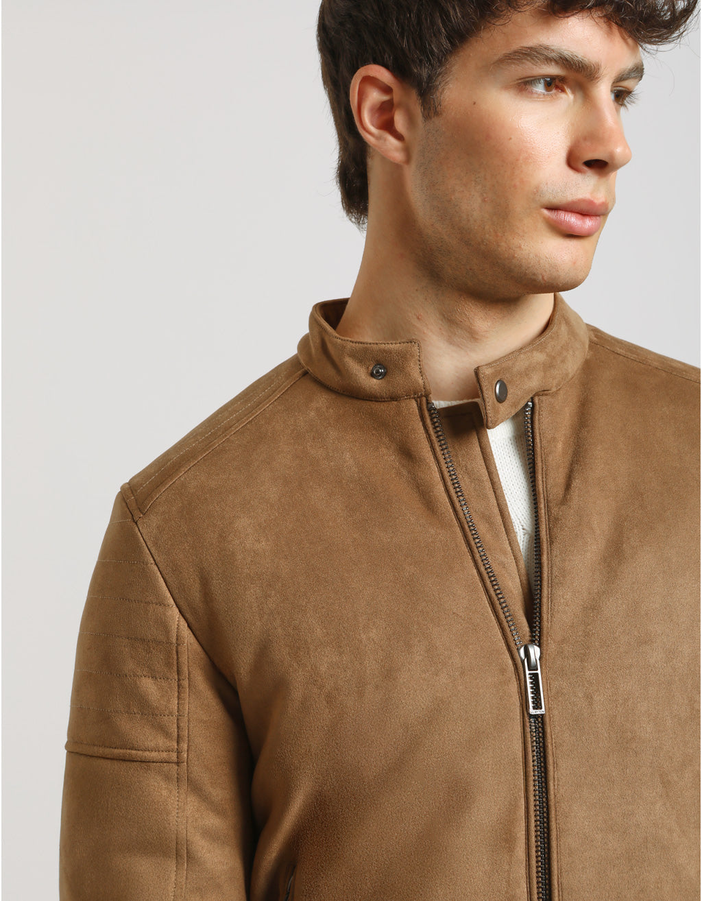 Giubbotto biker effetto camoscio